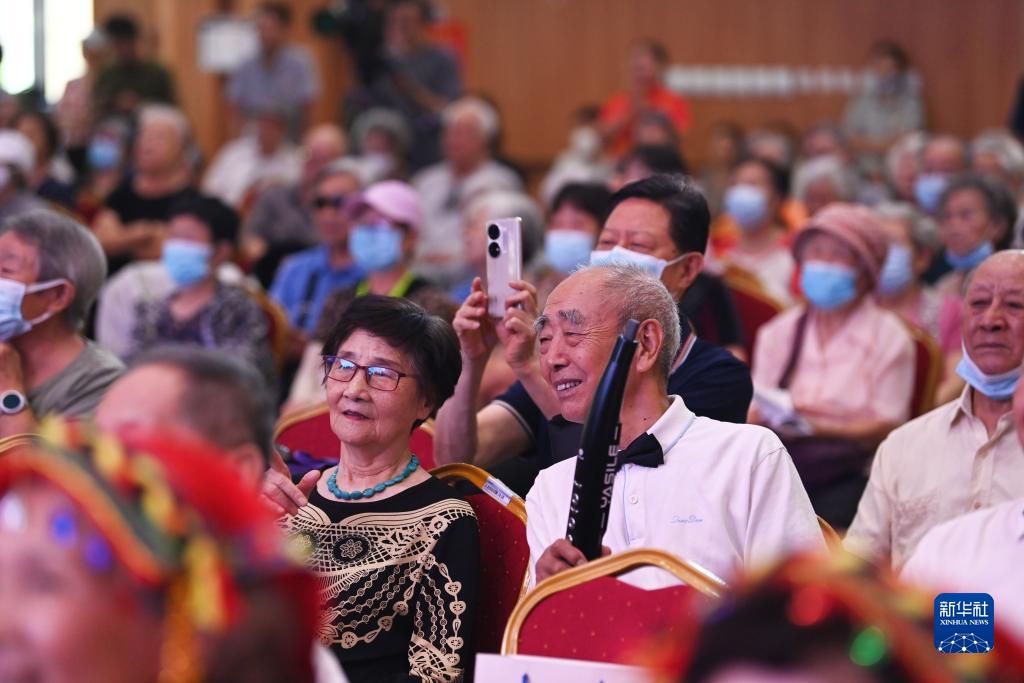 河北廊坊三河市燕達金色年華健康養護中心入住老人在觀(guān)看文藝匯演(7月20日攝)。