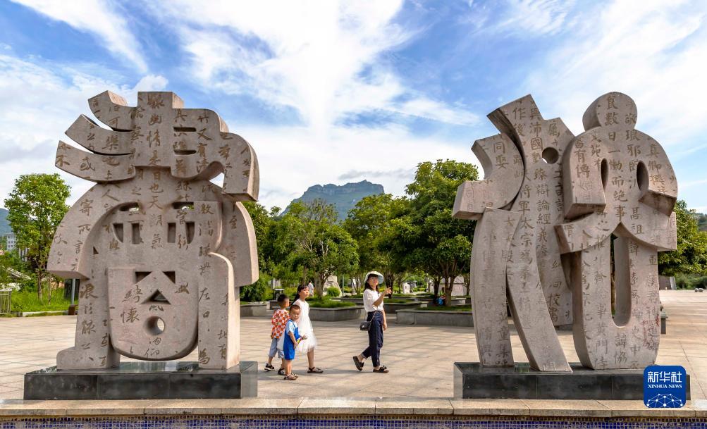 7月21日,游客在貴州省銅仁市印江土家族苗族自治縣書(shū)法廣場(chǎng)參觀(guān)游玩。