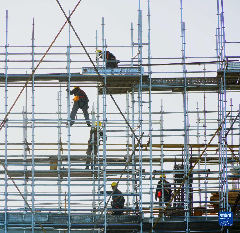 7月21日,在阿克塞千萬(wàn)千瓦級可再生能源多能互補基地,工人在匯東新能源75萬(wàn)千瓦光熱+項目建設現場(chǎng)施工。
