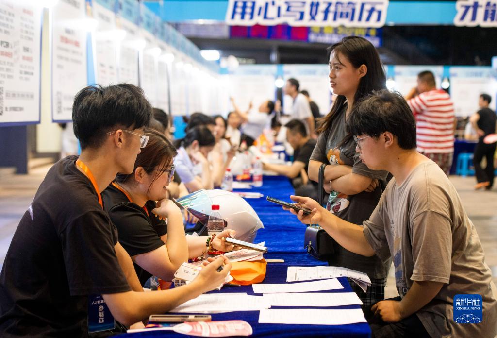 當日,浙江省金華市舉辦“人才夜市”高校畢業(yè)生專(zhuān)場(chǎng),多家生物醫藥、機械制造、新能源企業(yè)為求職者提供工作崗位,吸引了許多高校畢業(yè)生前往咨詢(xún)應聘。
