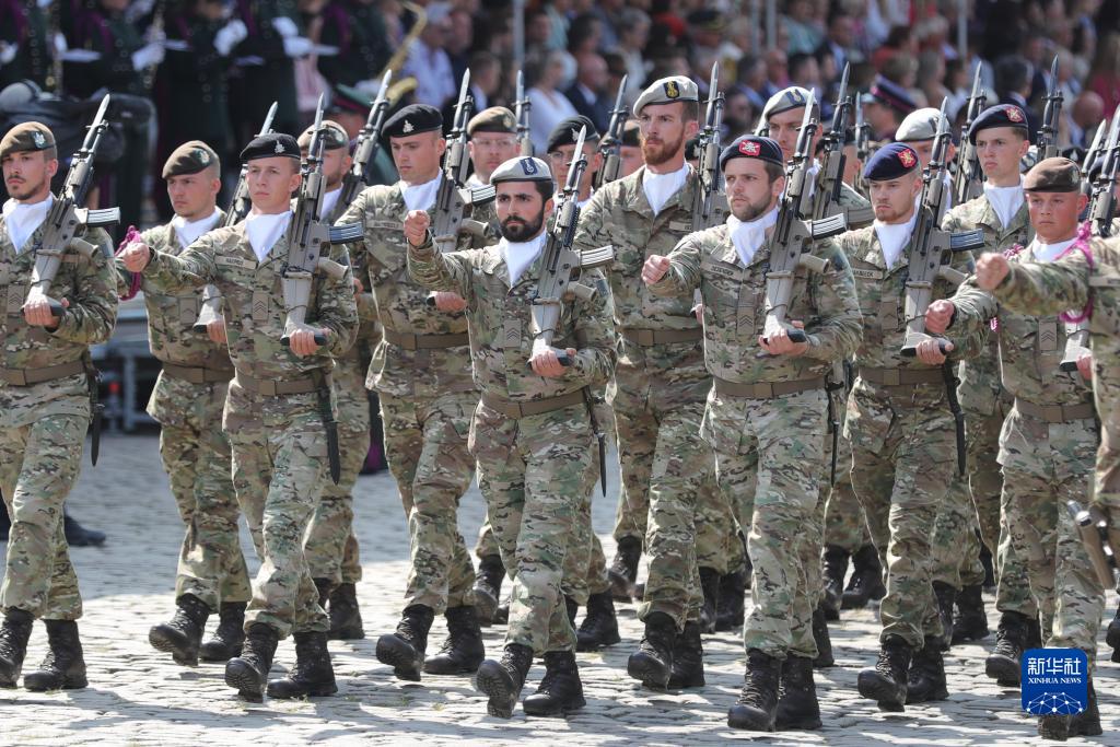 7月21日,軍人在比利時(shí)布魯塞爾參加國慶日閱兵式。