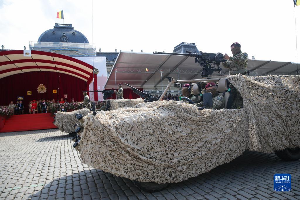 7月21日,軍人駕駛軍事車(chē)輛在比利時(shí)布魯塞爾參加國慶日閱兵式。