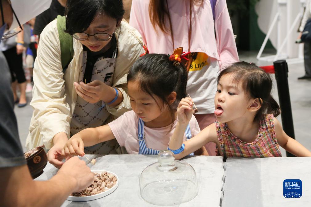 7月21日晚,小朋友在夜間“那達慕”大會(huì )上品嘗美食。