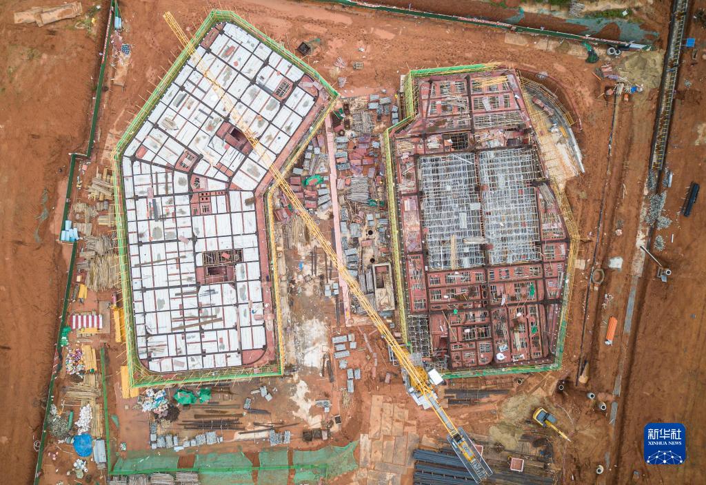 這是在海南文昌國際航天城拍攝的建設中的太空實(shí)驗室文昌基地(一期工程)項目(無(wú)人機照片,7月16日攝)。