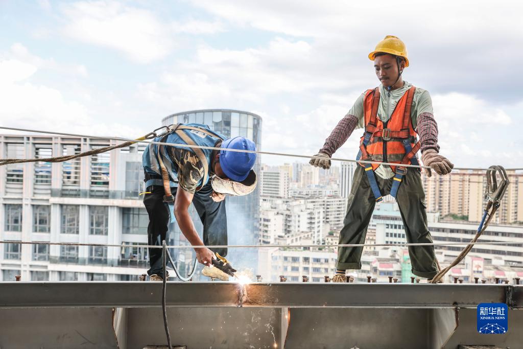7月21日,工人在??谑泻D现行捻椖康摹翱罩性鞓菣C”內施工作業(yè)。