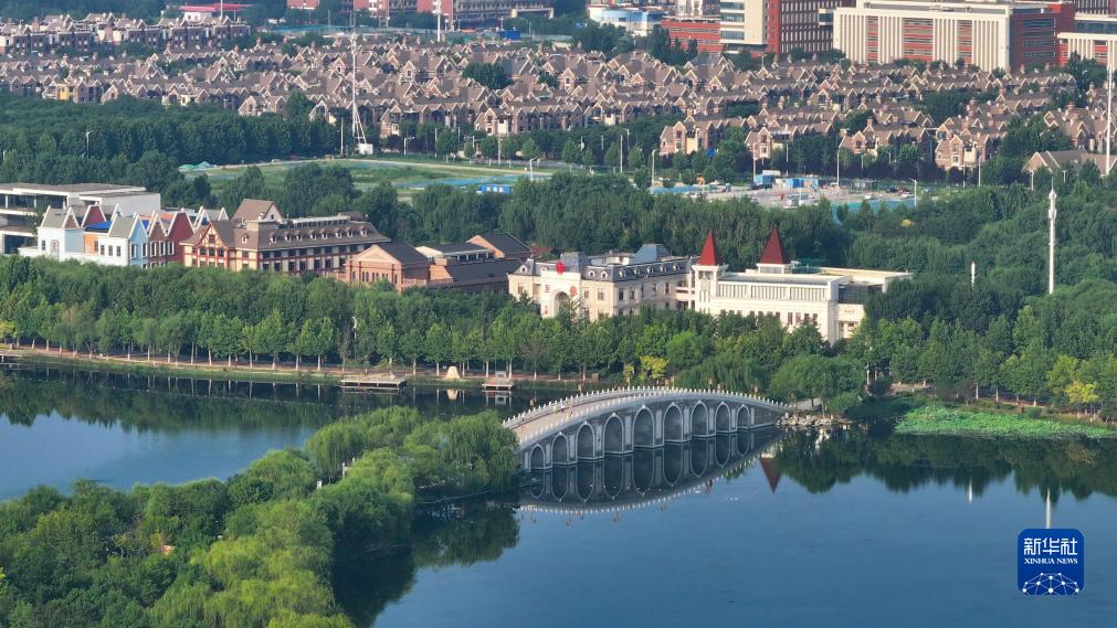 這是7月22日拍攝的河北省唐山市南湖及城市景觀(guān)(無(wú)人機照片)。