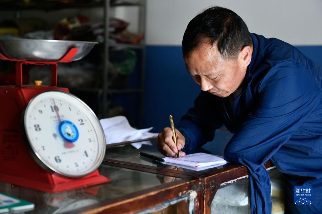 朱大清在村衛生室填寫(xiě)患者病歷(7月19日攝)。