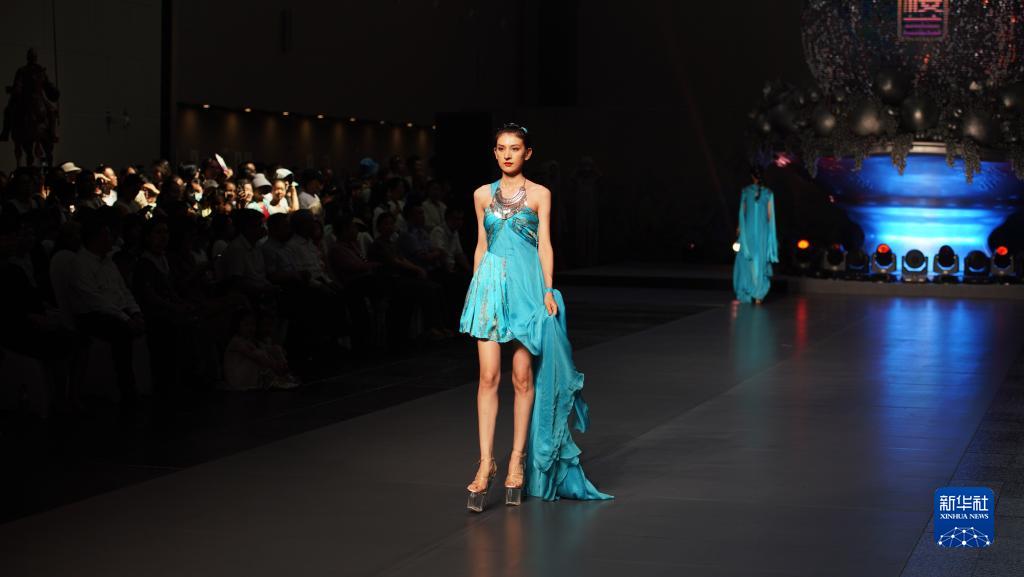 時(shí)尚秀現場(chǎng),模特展示服飾作品(7月22日攝)。