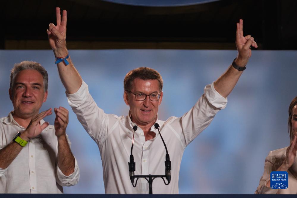 7月24日,在西班牙馬德里,人民黨主席阿爾韋托·努涅斯·費霍與支持者互動(dòng)。