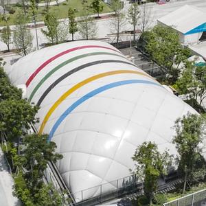 這是7月22日在成都高新體育中心多功能館外拍攝的臨時(shí)訓練氣膜館(無(wú)人機照片)。該臨時(shí)訓練氣膜館采用輕型裝配式氣膜結構,利用氣壓來(lái)支撐,無(wú)需任何梁、柱,可得到更大的完全凈空的建筑空間,具有節約能源、減少水資源消耗、降低二氧化碳排放量、延長(cháng)使用壽命、降低建筑物運行成本、促進(jìn)可持續發(fā)展等優(yōu)點(diǎn)。