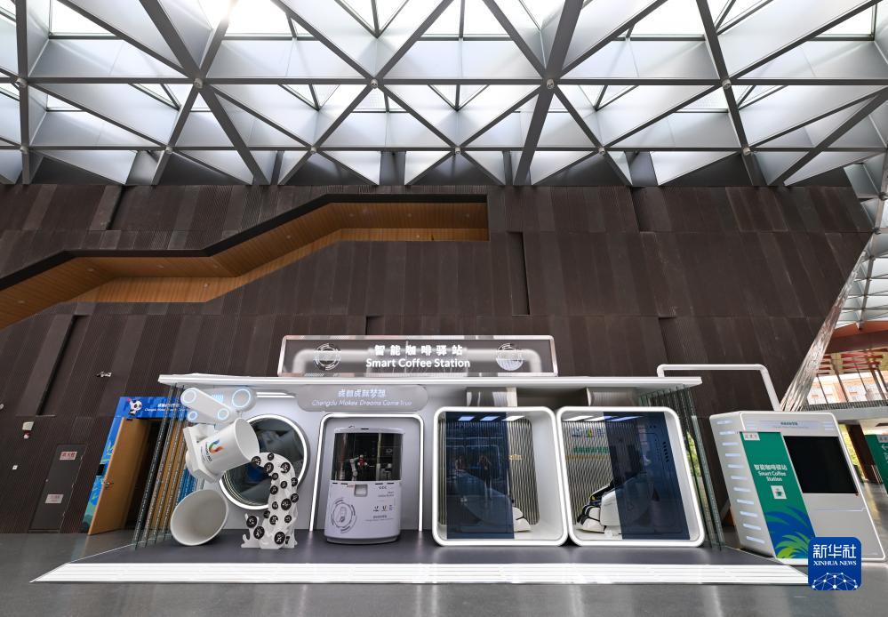 這是7月15日拍攝的大運村內的智能咖啡驛站。