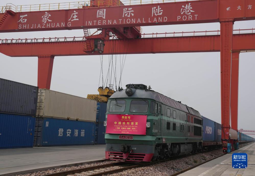 7月24日,“燕趙號”中越班列準備從河北省石家莊國際陸港駛出。