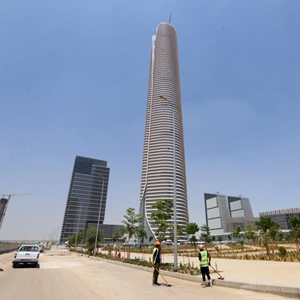 7月24日,工人在埃及開(kāi)羅以東的新行政首都中央商務(wù)區項目建設現場(chǎng)施工。