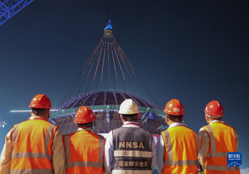 這是7月25日拍攝的徐大堡核電項目3號機組穹頂吊裝施工現場(chǎng)。