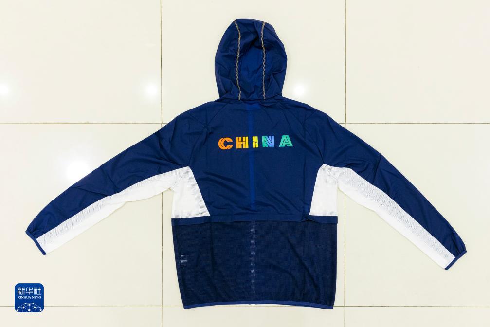 這是7月24日拍攝的第31屆世界大學(xué)生夏季運動(dòng)會(huì )中國代表團成員配發(fā)裝備中的梭織單層夾克。