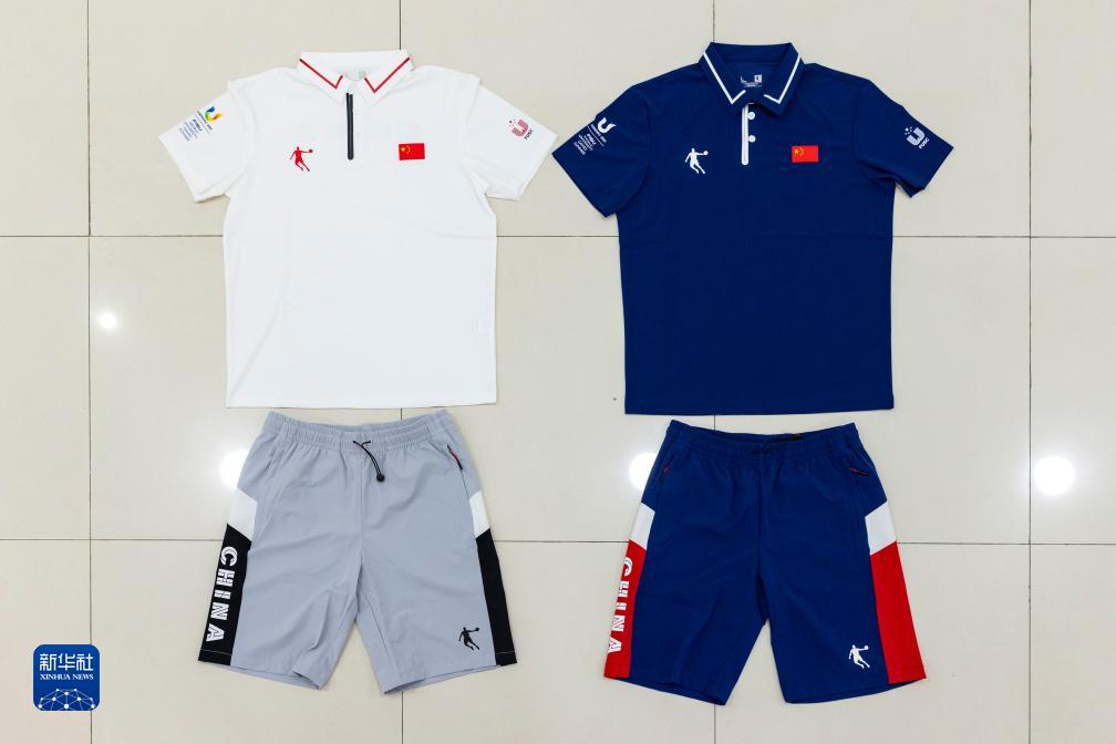 這是7月24日拍攝的第31屆世界大學(xué)生夏季運動(dòng)會(huì )中國代表團成員配發(fā)裝備中的POLO短袖T恤衫和梭織五分褲。