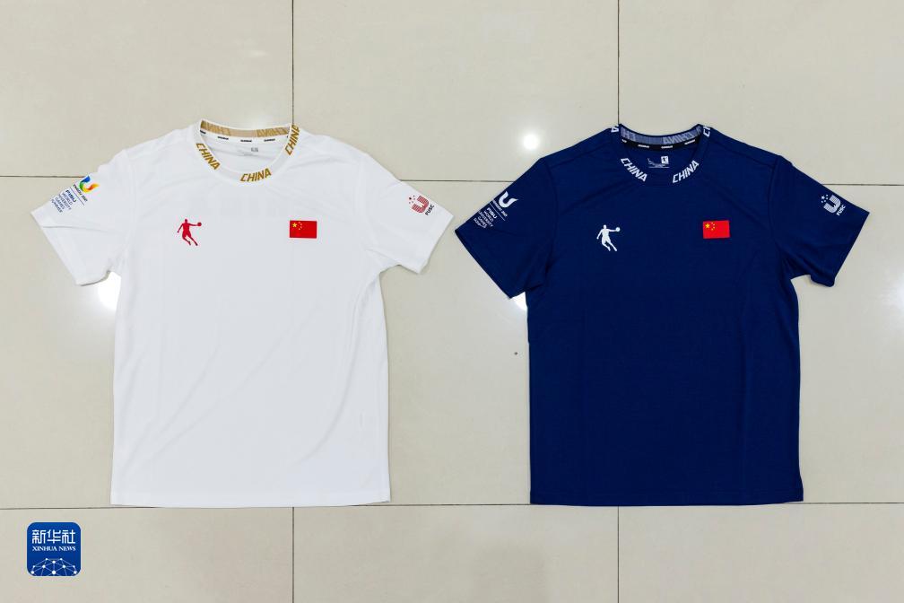 這是7月24日拍攝的第31屆世界大學(xué)生夏季運動(dòng)會(huì )中國代表團成員配發(fā)裝備中的功能短T恤衫。