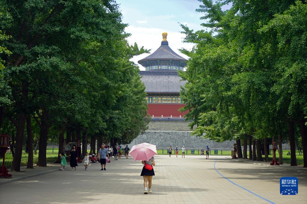 游客從天壇祈年殿外經(jīng)過(guò)(7月10日攝)。天壇始建于明永樂(lè )十八年(1420年),是世界上現存規模最大、保存最完整的古代祭天建筑群,1998年被列入世界文化遺產(chǎn)名錄。