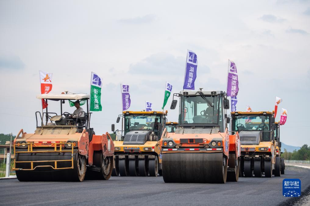 7月25日,壓路機在衡永高速路面工程施工作業(yè)。