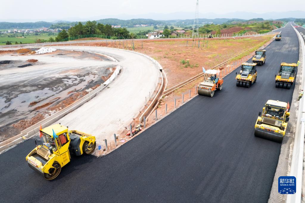 這是7月25日拍攝的衡永高速路面工程施工現場(chǎng)(無(wú)人機照片)。