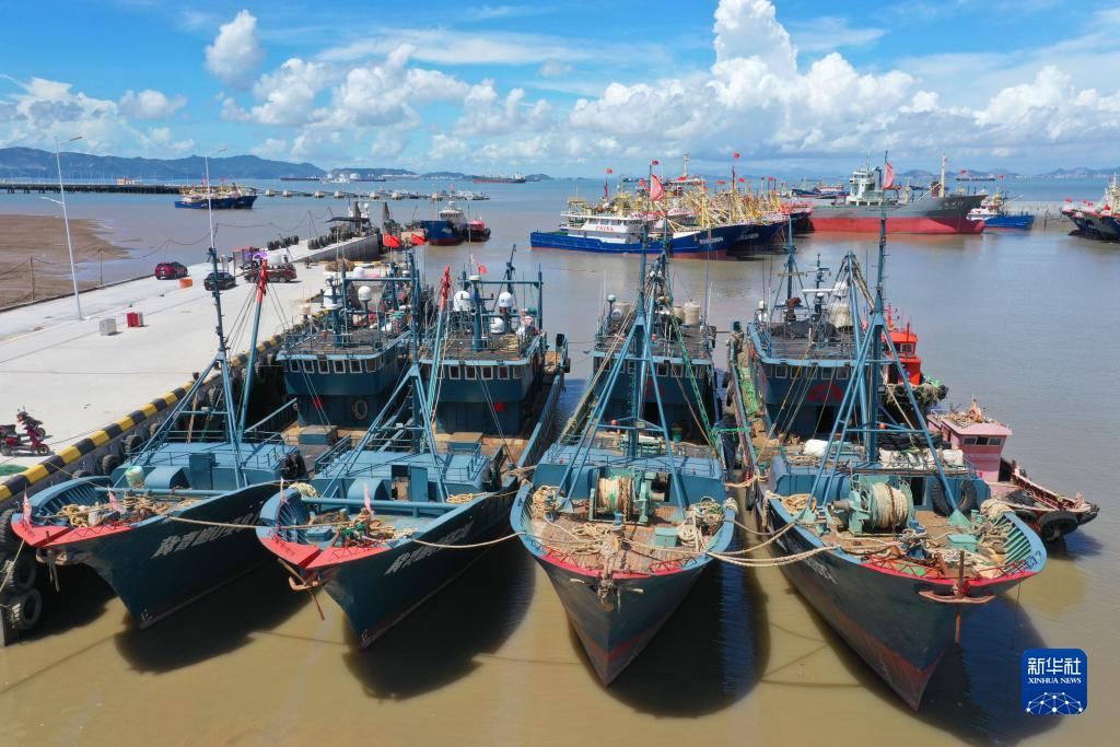 當日,為防御今年第5號臺風(fēng)“杜蘇芮”,浙江玉環(huán)、瑞安、舟山等地漁船陸續回港避風(fēng)。新華社發(fā)(段俊利攝)