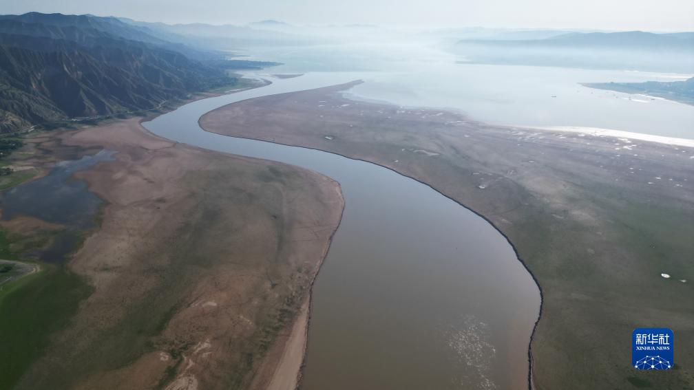 劉家峽水庫水位下降,大片河灘裸露(7月24日攝,無(wú)人機照片)。