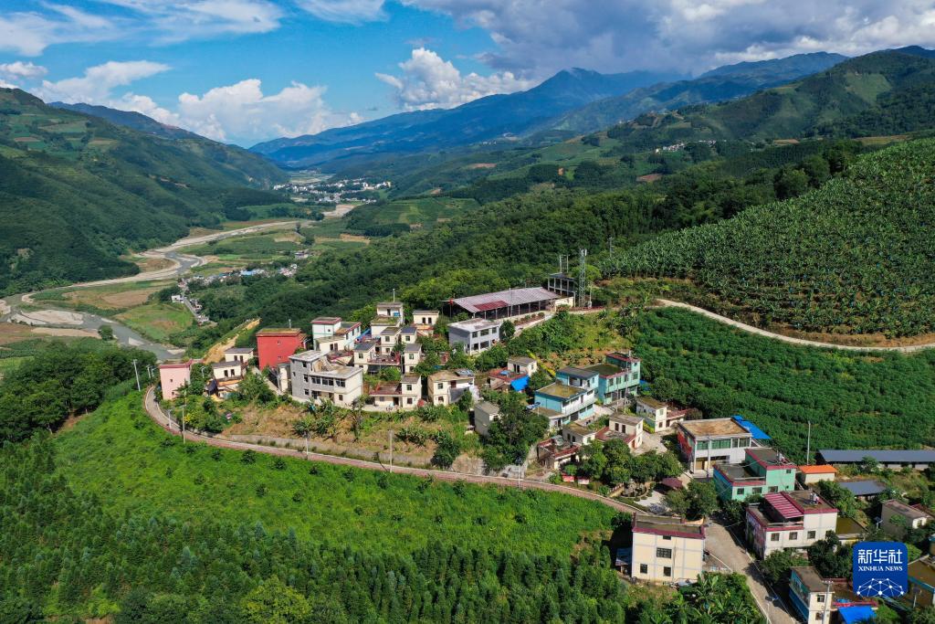 這是金平縣者米鄉一處苦聰人搬遷定居的村莊(7月23日攝,無(wú)人機照片)。新華社記者 陳欣波 攝