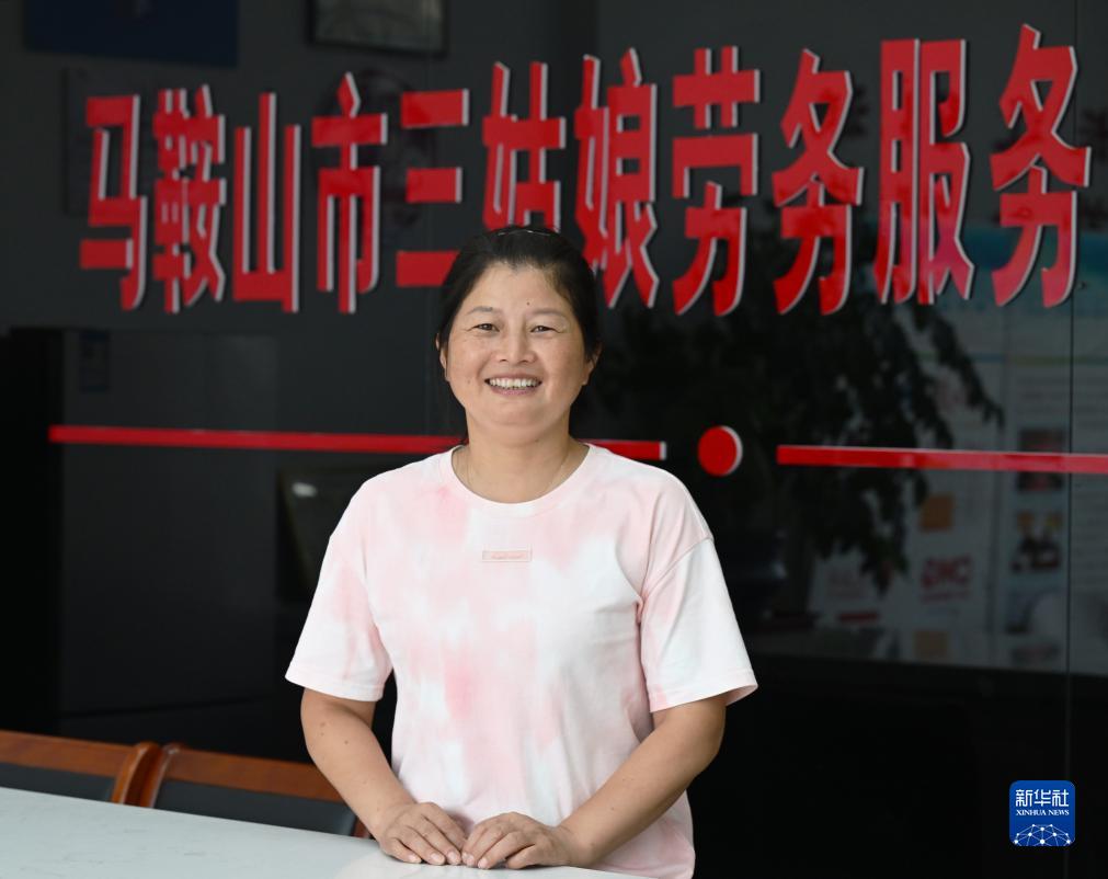 7月24日,陳蘭香在馬鞍山市三姑娘勞務(wù)服務(wù)有限公司留影。新華社記者 周牧 攝