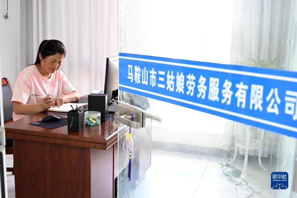 7月24日,陳蘭香在馬鞍山市三姑娘勞務(wù)服務(wù)有限公司辦公。新華社記者 周牧 攝