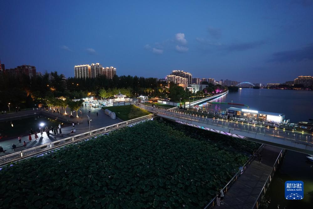 太原市汾河景區燈光璀璨(7月25日攝)。