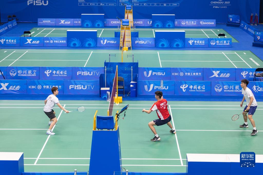 7月25日,中國代表團選手在雙流體育中心體育館進(jìn)行羽毛球賽前訓練。
