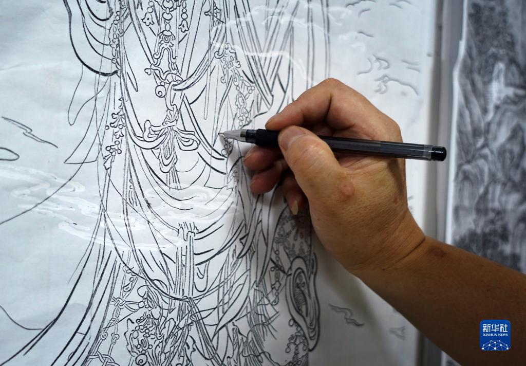 黃俊軍在工作室里繪制銅雕草圖(7月13日攝)。