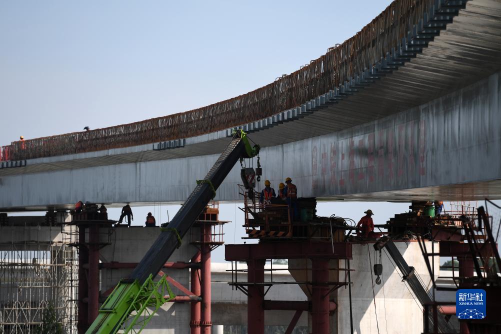 7月26日,在廣西賓陽(yáng)縣境內,中鐵上海工程局工人在上橫高速公路施工現場(chǎng)作業(yè)。