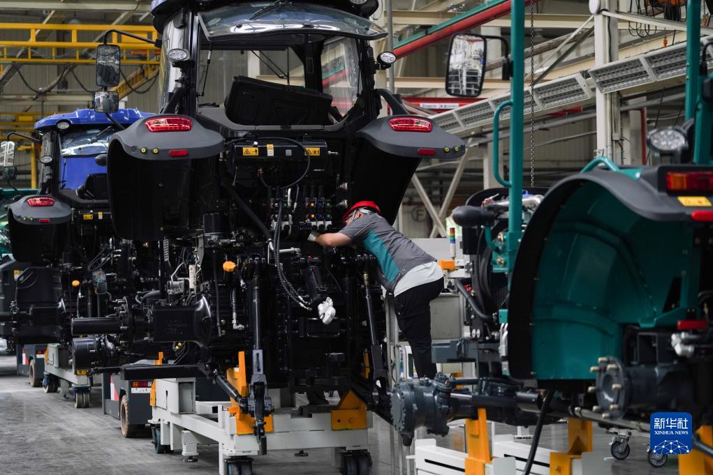 7月26日,在位于濰坊市的濰柴雷沃智慧農業(yè)科技股份有限公司,工人在組裝拖拉機。