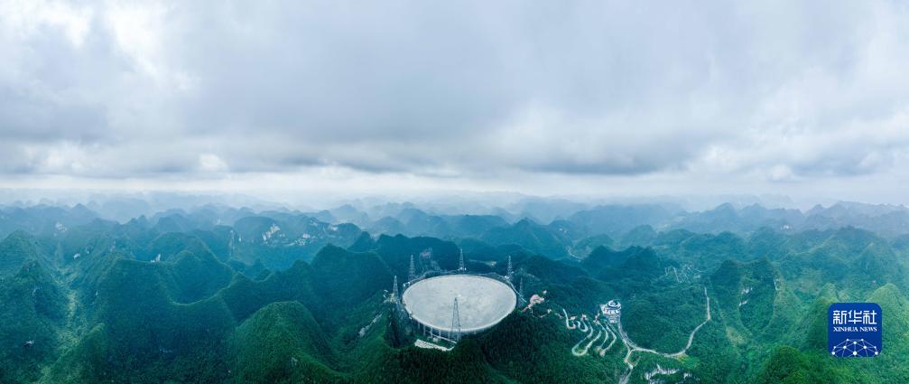 7月26日拍攝的“中國天眼”全景(維護保養期間無(wú)人機拍攝)。