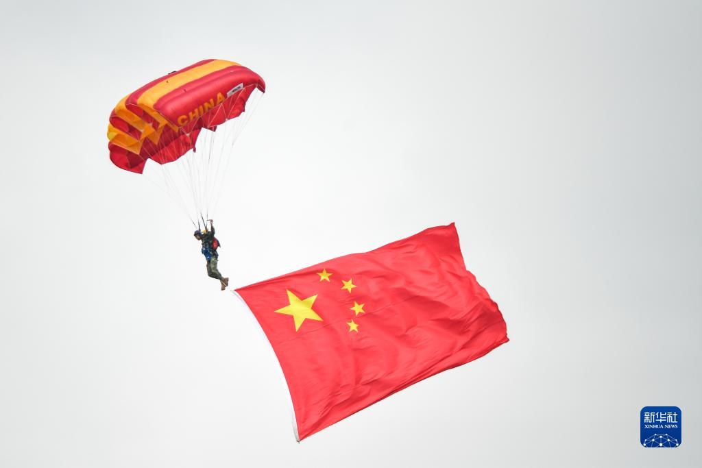 7月26日,在2023年空軍航空開(kāi)放活動(dòng)·長(cháng)春航空展上,“八一”跳傘隊隊員進(jìn)行表演。