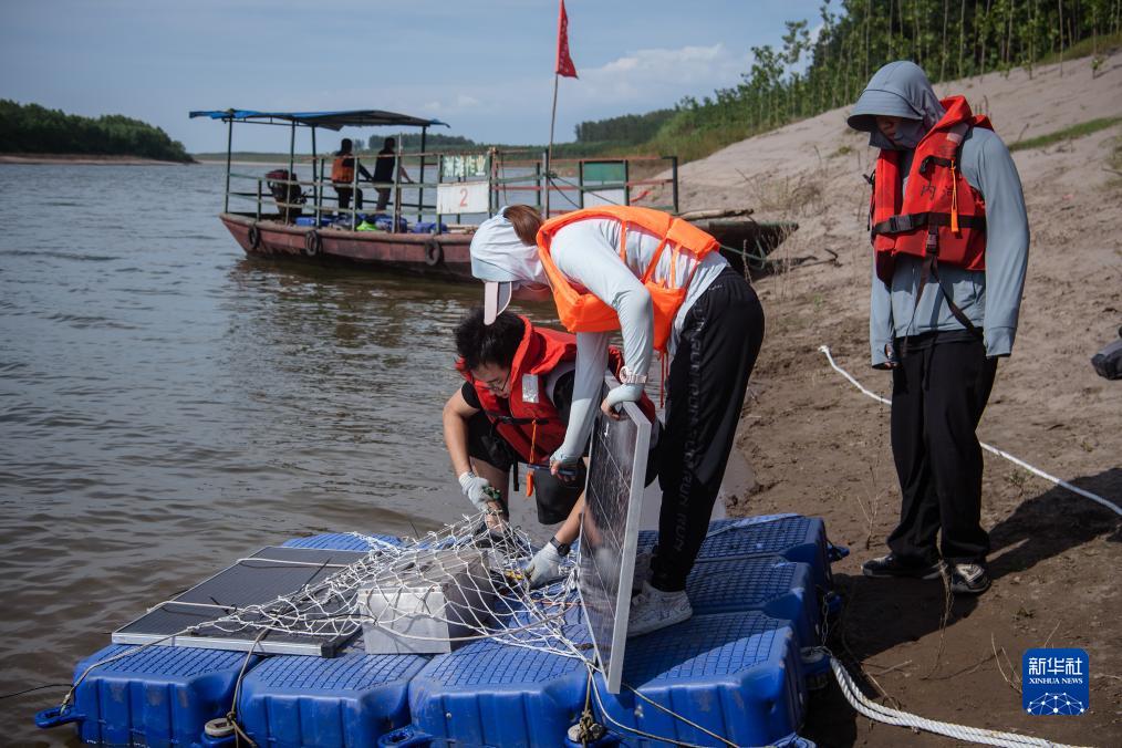 6月27日,中國科學(xué)院水生生物研究所鯨類(lèi)保護生物學(xué)學(xué)科組工作人員在天鵝洲江豚放歸適應區水域回收聲學(xué)檢測設備。
