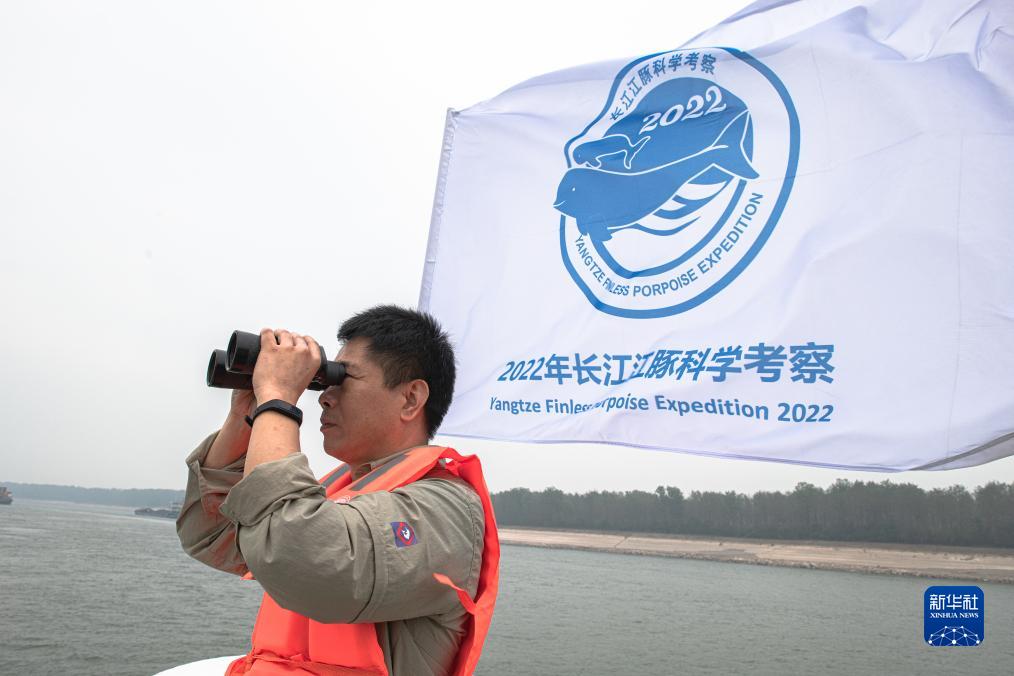 2022年9月23日,郝玉江在湖北石首水域進(jìn)行長(cháng)江江豚觀(guān)測工作。