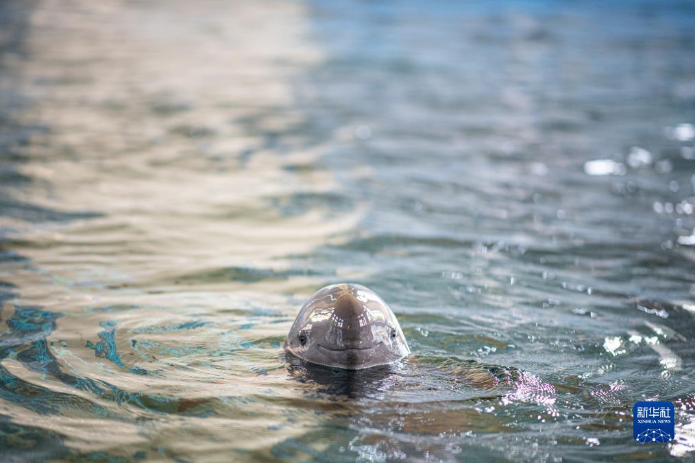 7月5日,長(cháng)江江豚“淘淘”在白鱀豚館水中游弋。
