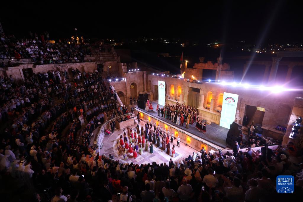 7月26日,人們觀(guān)看約旦杰拉什文化藝術(shù)節開(kāi)幕式演出。