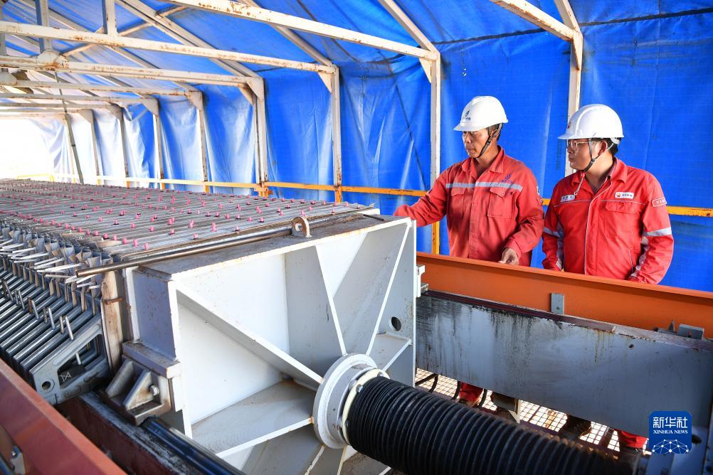 7月26日,在長(cháng)慶油田蘇里格氣田一處鉆井現場(chǎng),技術(shù)人員在介紹鉆井巖屑無(wú)害化處理過(guò)程。