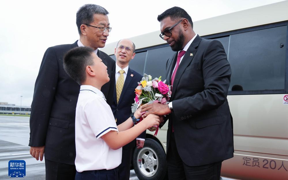 成都大運會(huì )丨來(lái)華出席成都大運會(huì )開(kāi)幕式并訪(fǎng)問(wèn)的圭亞那總統阿里抵達四川省成都市