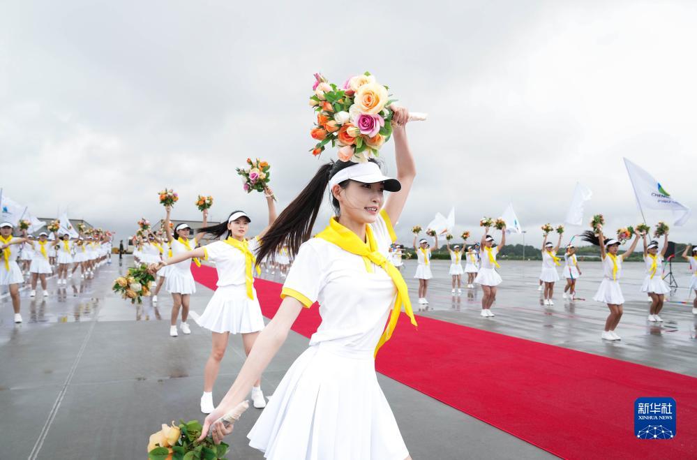 7月27日下午,來(lái)華出席成都大運會(huì )開(kāi)幕式并訪(fǎng)問(wèn)的圭亞那總統阿里抵達四川省成都市。這是歡迎儀式現場(chǎng)。