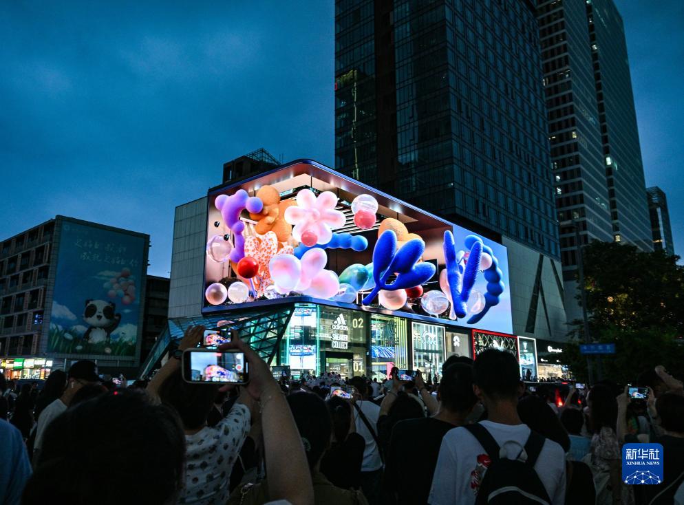 7月25日,成都太古里的3D裸眼大屏前人頭攢動(dòng)。