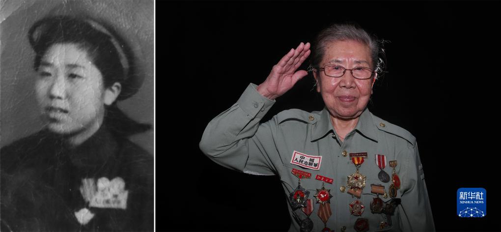 吳曉嵐(拼版照片,2020年9月9日攝),1934年出生于吉林省磐石縣黑石鎮。1948年2月參加革命工作,歷經(jīng)遼沈戰役、平津戰役和抗美援朝戰爭,歷任護士、護士班長(cháng)。