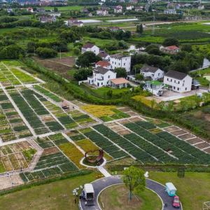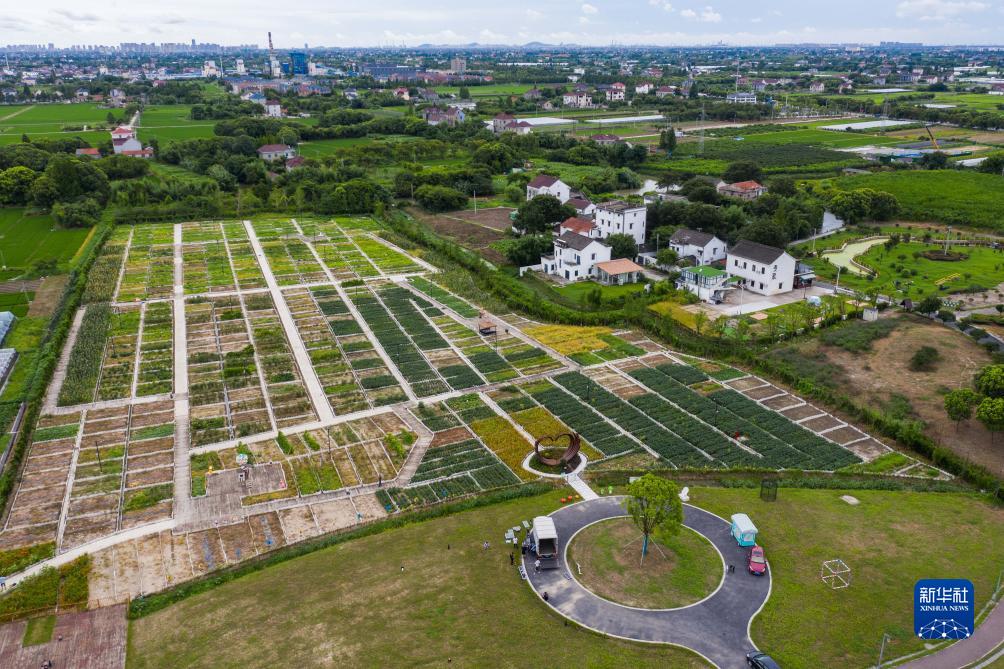 空中俯瞰嘉興市南湖區鳳橋鎮永紅村的共享田園,這也是當地的鄉村旅游項目之一(7月27日攝,無(wú)人機照片)。