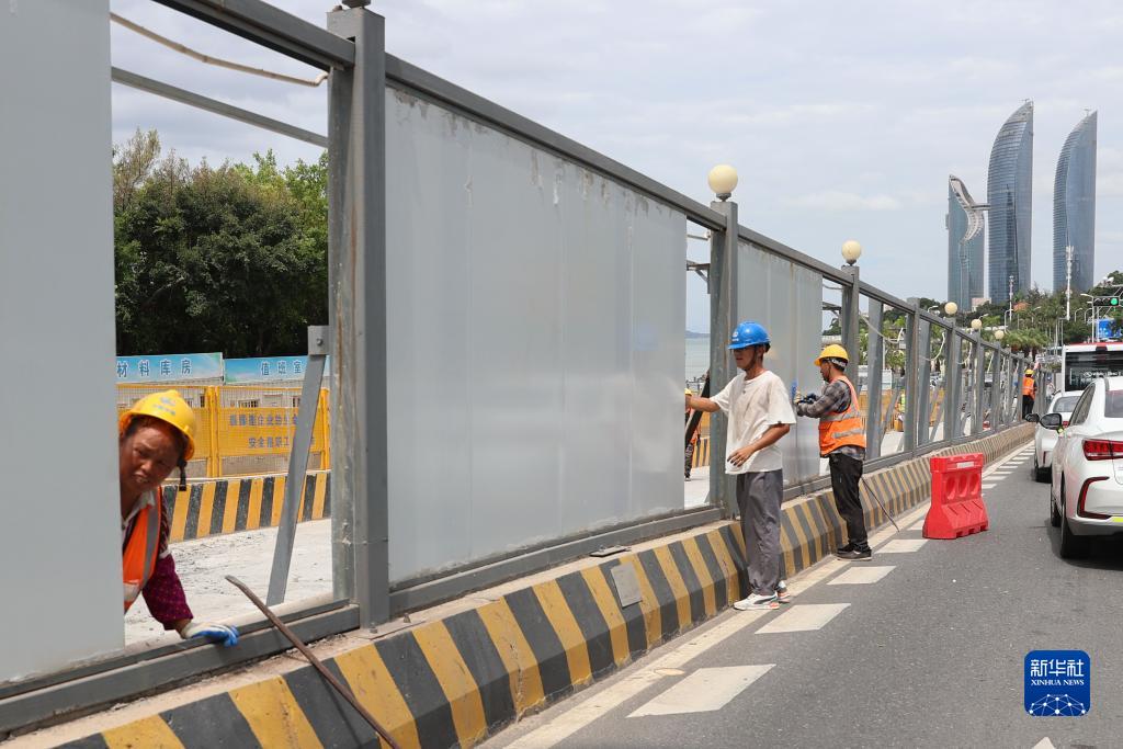 7月27日,工人在福建廈門(mén)環(huán)島路拆除可能受臺風(fēng)影響的施工工地圍擋。