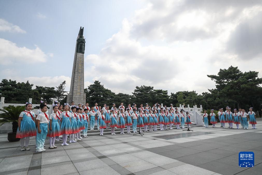 7月27日,來(lái)自中國少年先鋒隊沈陽(yáng)雷鋒朗誦團的孩子們在紀念碑前朗誦《誰(shuí)是最可愛(ài)的人》(節選)。
