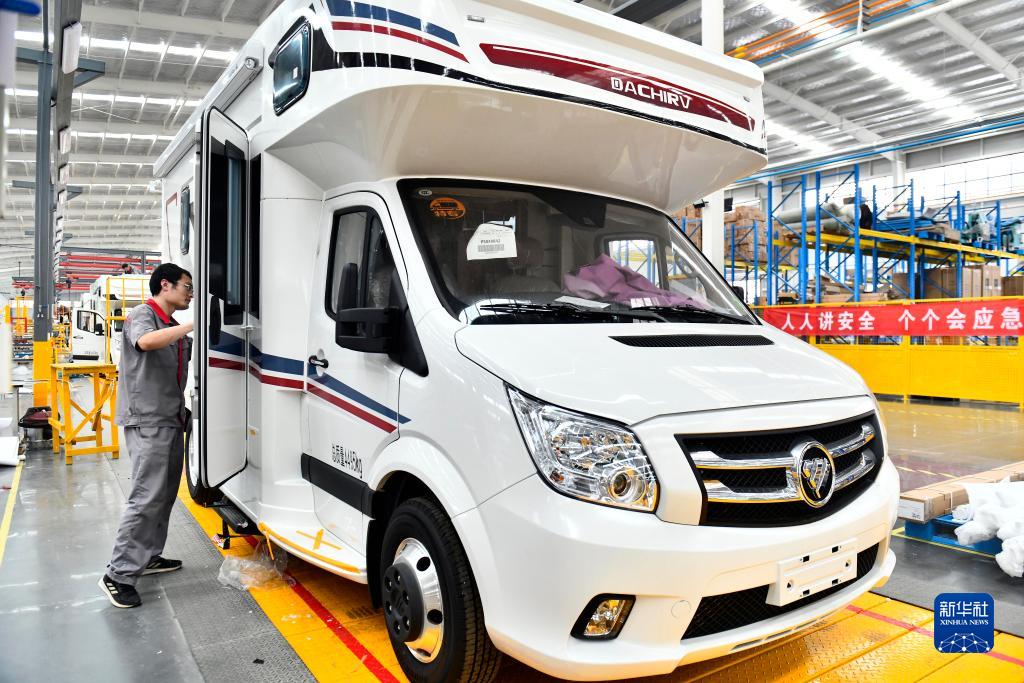 7月27日,在位于莒縣的大馳智能房車(chē)(日照)有限公司,工作人員在裝配房車(chē)。