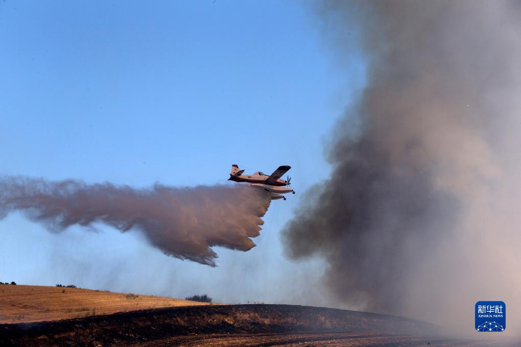 7月27日,消防飛機在希臘沃洛斯郊外參與滅火。